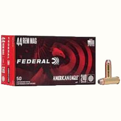 A HEFTY HAUL EVEN BY FEDERAL AMERICAN EAGLE STANDARDS. THIS 240 GRAIN JACKETED HOLLOW POINT AMMO GUARANTEES THAT YOU HAVE ALL OF THE STOPPING POWER NEEDED TO DEAL WITH EVEN THE MOST DETERMINED ANIMALS. REST ASSURED THAT YOU WILL BE GETTING QUALITY AMMO WITH EXTREMELY PREDICTABLE BALLISTIC QUALITIES WITH FEDERAL.